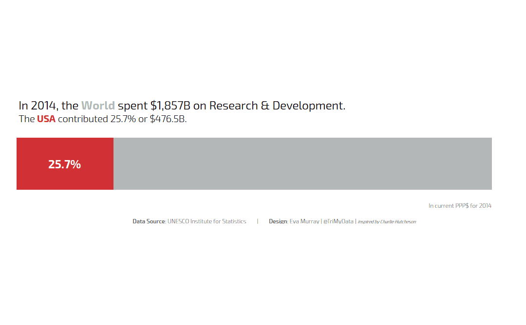 - I focused on one simple message, showing the huge spending on R&D in the US as part of the world total.