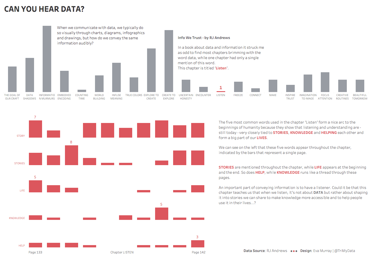 For this week’s makeover, we’re collaborating with RJ Andrews on his recent book ‘Info We Trust’. RJ gave me a fun word cloud and the data behind the 270 most common word-forms in the book.