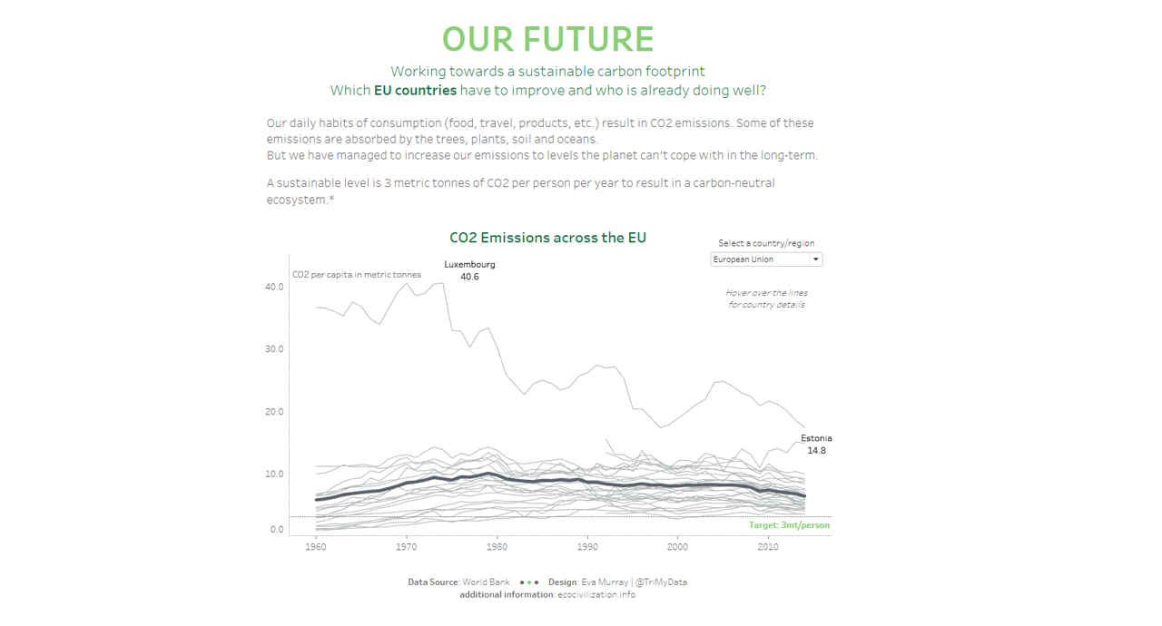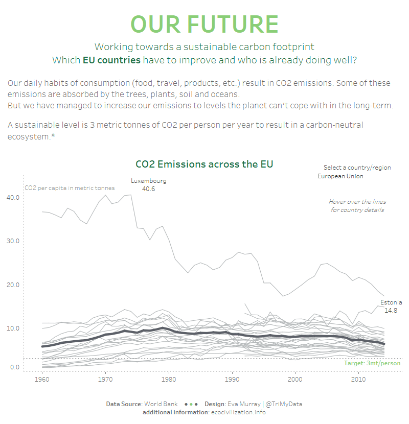 - Comparing to the target of 3 metric tonnes per capita (in tooltips).