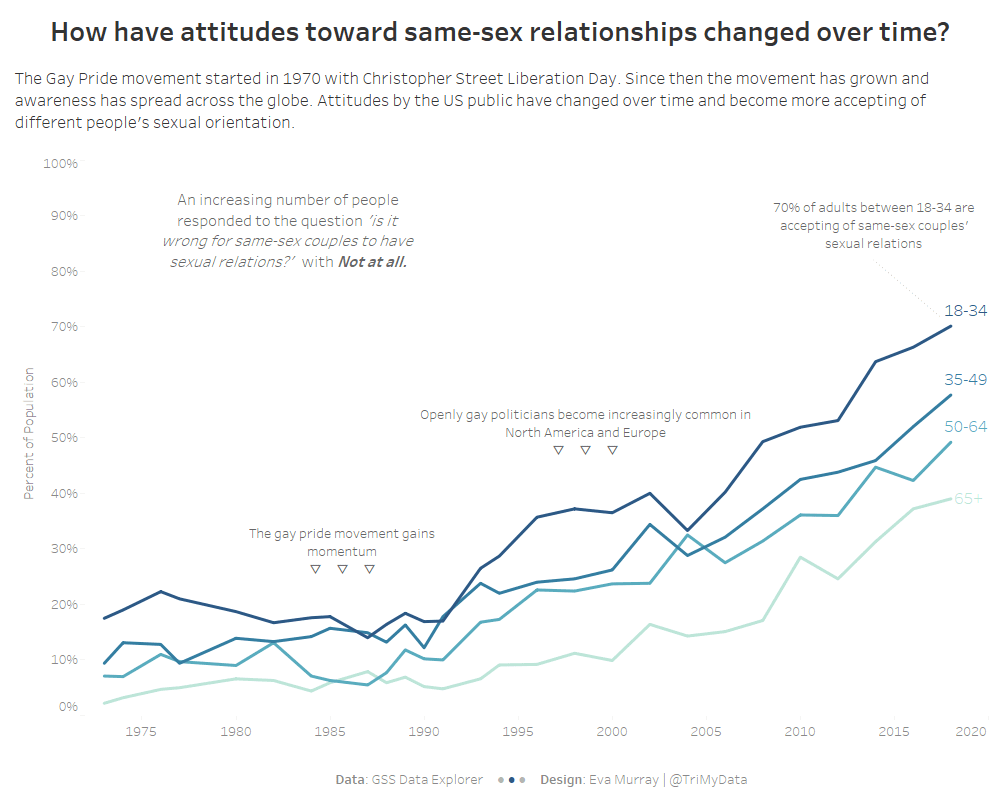 - It shows clearly that there is a positive trend with younger people leading the charge when it comes to being open-minded and accepting of differences in sexual orientation.