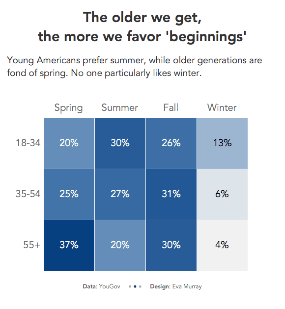 September 1st is the first day of autumn, meteorologically speaking. So I picked a dataset about how Americans feel about the different seasons.