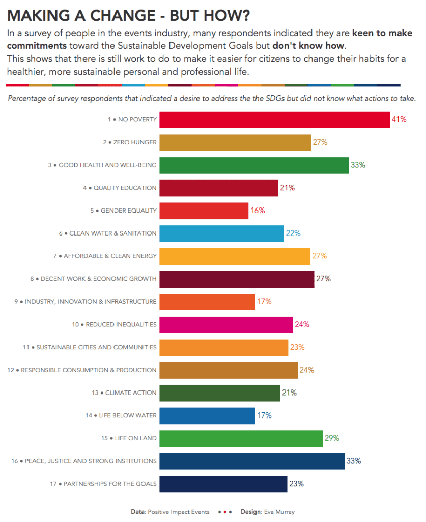 A survey was opened to respondents from the events industry to measure their commitment to sustainability, relating to the different SDGs.