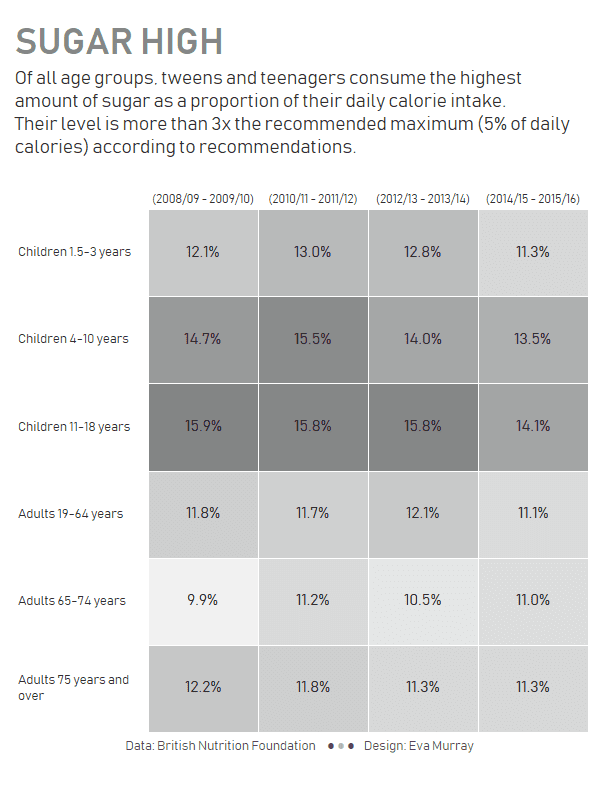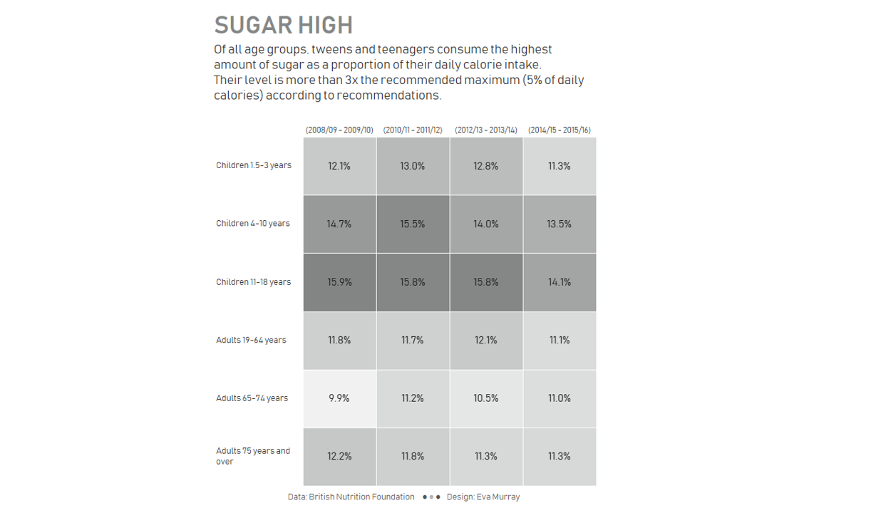 For week 3, Charlie picked an article and a viz about sugar and the high level of consumption of sugar in the UK by different age groups.