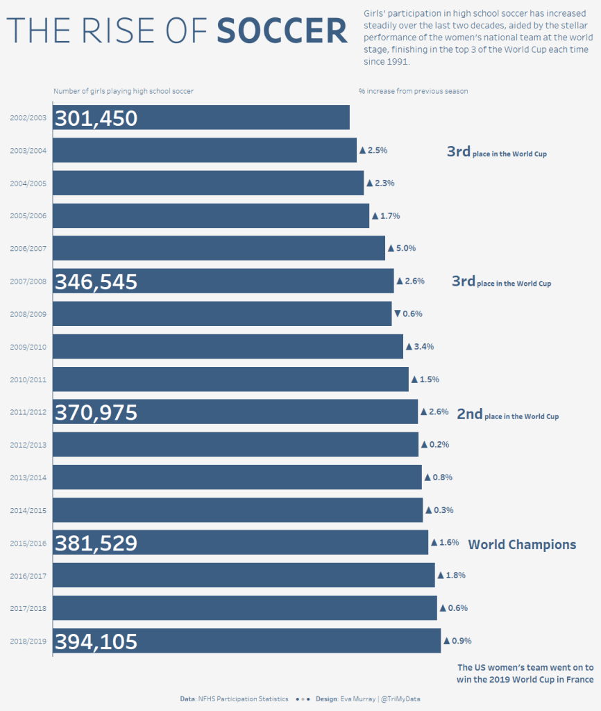 • I settled on the bar chart, focusing on girls’ participation in high school soccer: