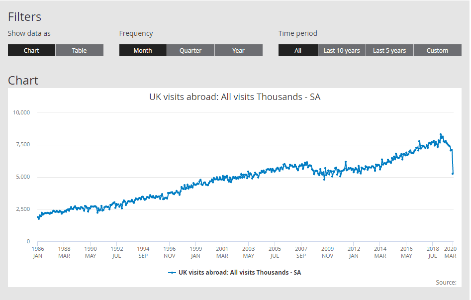 - It’s incredibly uninspiring, zero insights or explanations on what the numbers even are. I can only assume they represent individual people from the UK visiting other countries on business and leisure trips, but this isn’t confirmed anywhere on the page.